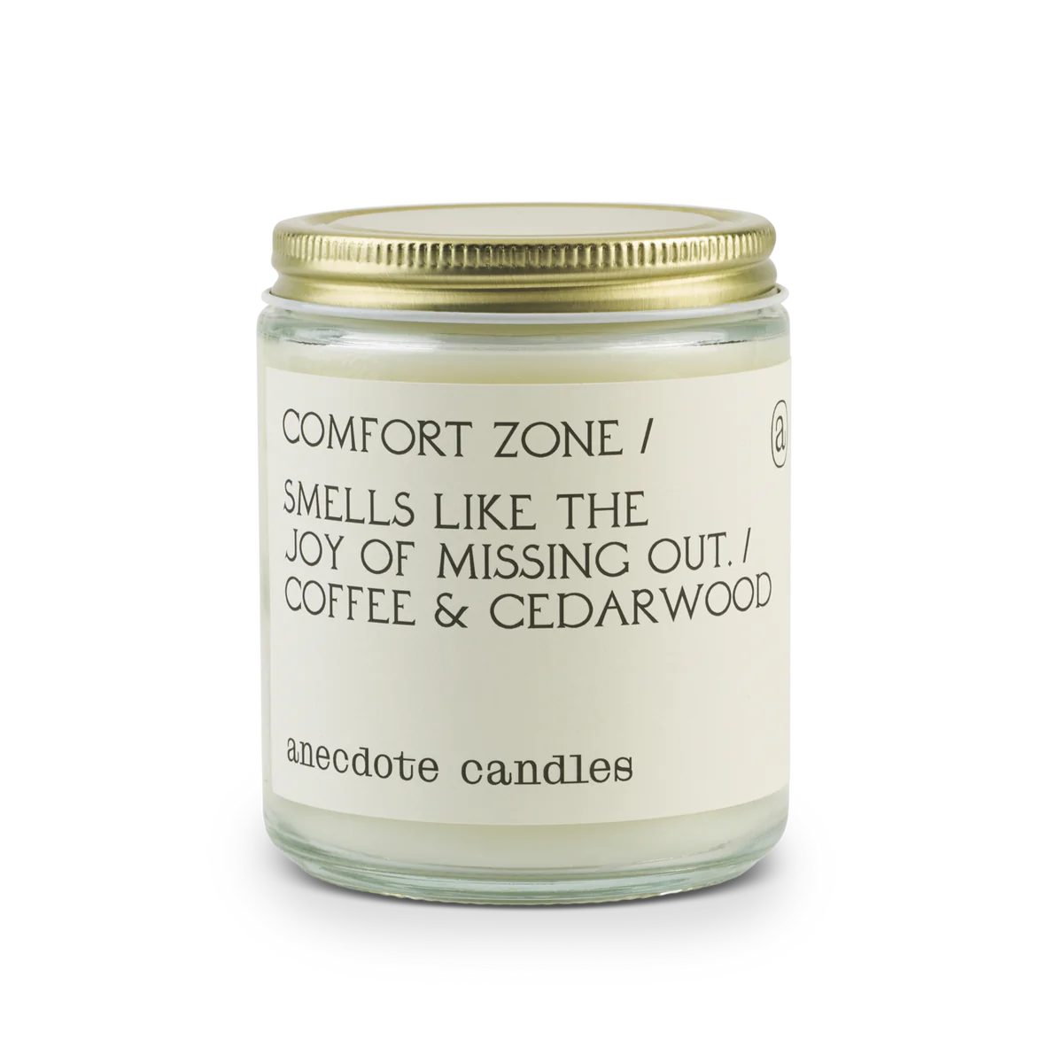 Coffee & Cedarwood - Warm and seductive, Comfort Zone is the candle to burn when you want to escape from it all. Orange blossom floats above a rich heart of coffee and jasmine, grounded by the warmth of vanilla, patchouli, and cedarwood for a modern take on introversion.