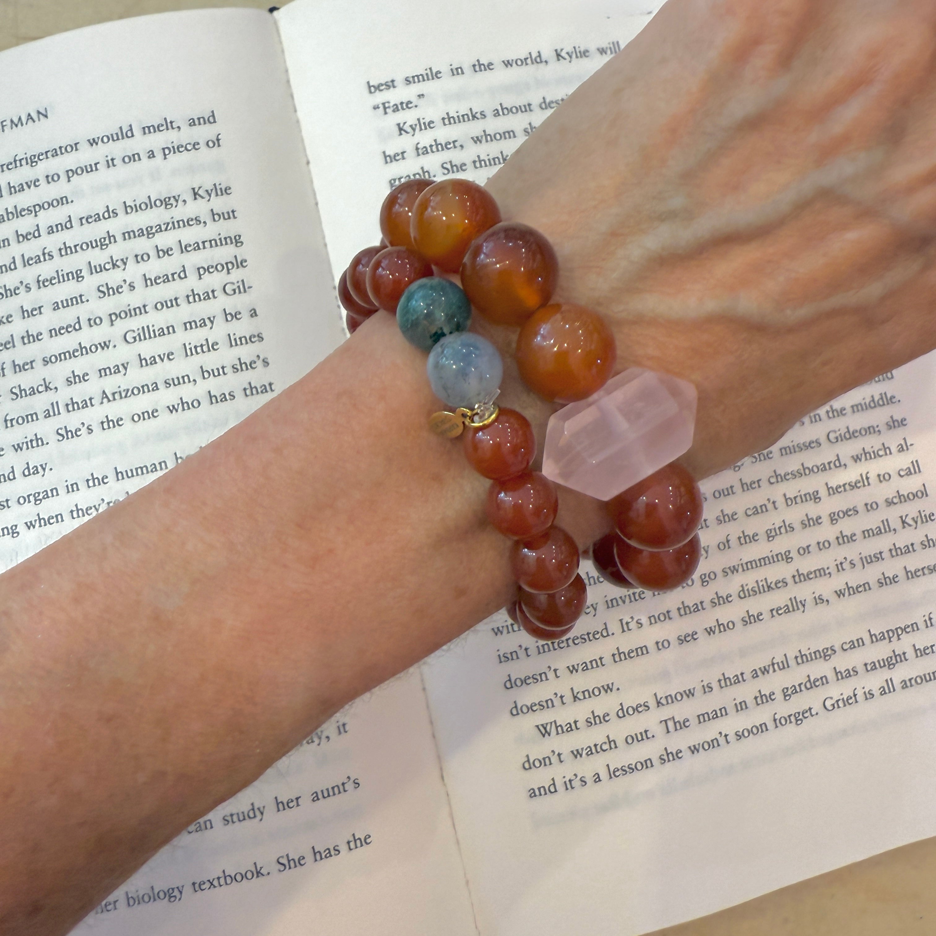 Starting a new adventure? This is a great crystal bracelet that offers strength, stability, and confidence when starting something new.Carnelian boosts your energy and bravery, sparking creativity and joy while grounding you with strength. Moss Agate invites fresh starts, helping you find balance, shake off stress, and embrace confidence with ease. Together, they make a lively duo for your wrist!