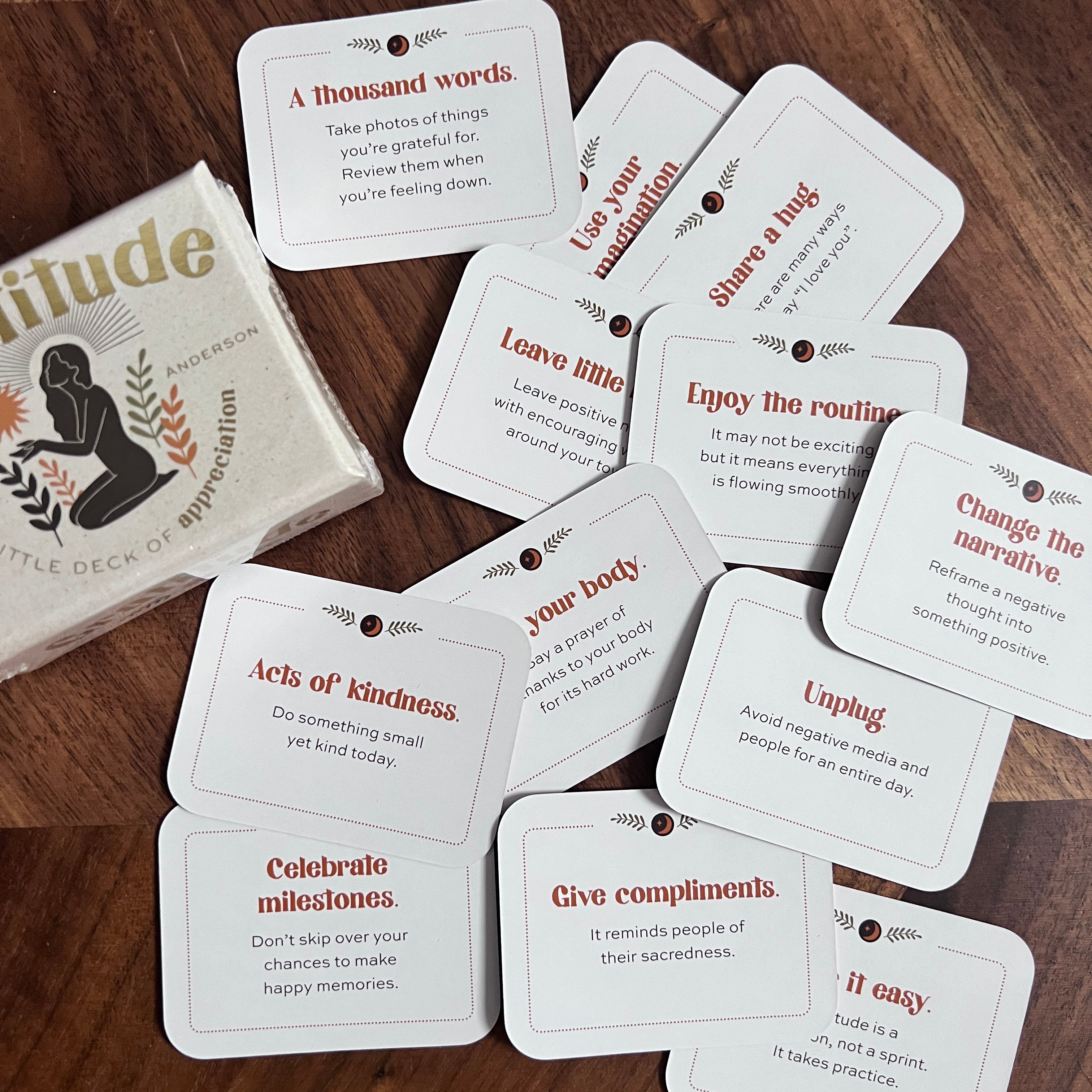 💛 Mini Gratitude Deck — A daily dose of joy in 40 pocket-sized cards. Each one offers a simple prompt to shift your mindset and cultivate appreciation, no matter what the day brings.