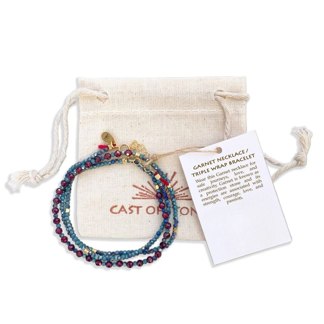 Get ready to travel in style with this stunning Garnet crystal necklace or triple wrap bracelet (you choose!). Not only will you look amazing, but you'll also feel safe and full of love and creativity. Garnet is like your personal bodyguard, keeping you protected with its powerful energy. Plus, it's associated with bravery and passion – talk about a power couple!