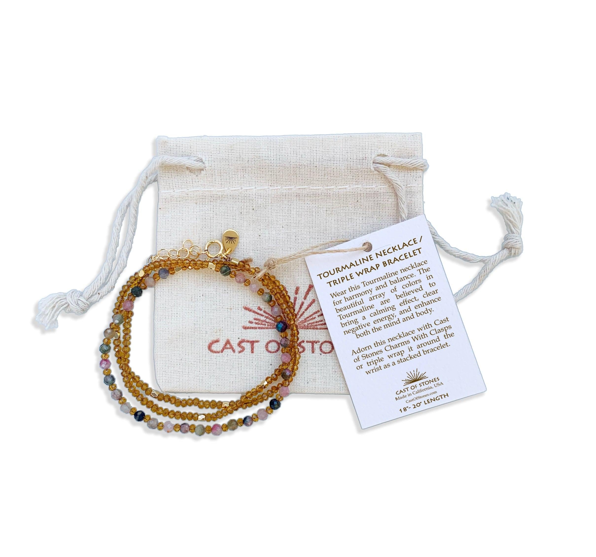 Introducing our Tourmaline Crystal Gemstone Necklace/Triple Bead Bracelet. Whether you wear it around your neck or wrap it three times for a stylish bracelet, this versatile piece will bring you serenity and protection.