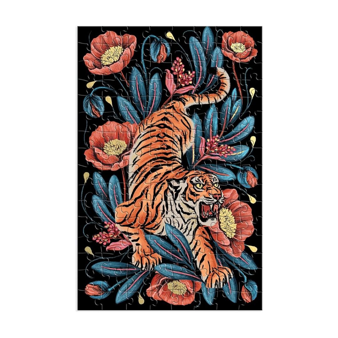 This fabulous Raxenne Manniquiz puzzle boasts a ferocious tiger and gorgeous flowers, all displayed against a cool black background. Packaged in a clever matchbox-style box with a convenient slide-out drawer, this puzzle is not only ideal for gifting but also for saving and reusing.