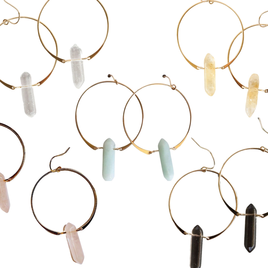 Choose between citrine, clear quartz, rose quartz, smoky quartz, or amazonite crystals.