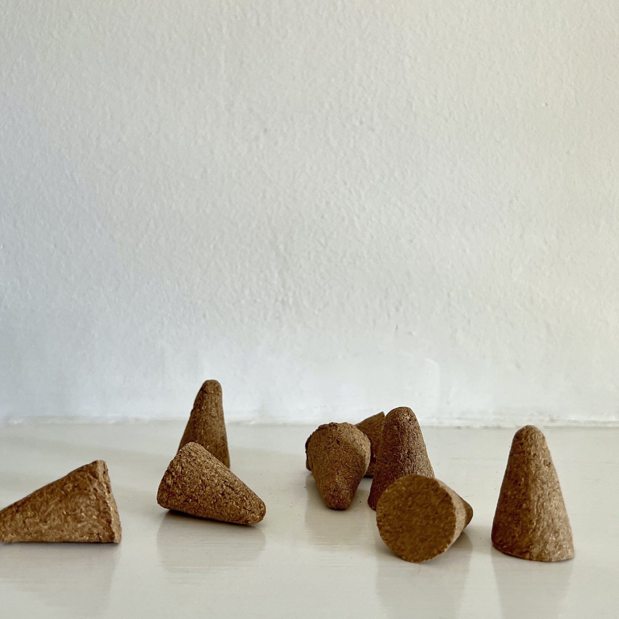 Our incense cones are made by hand and use only sustainably harvested Peruvian Palo Santo wood powder and natural resins of trees to obtain the texture and shape. Palo Santo translates to "holy wood" and is indigenous to the Central American region.