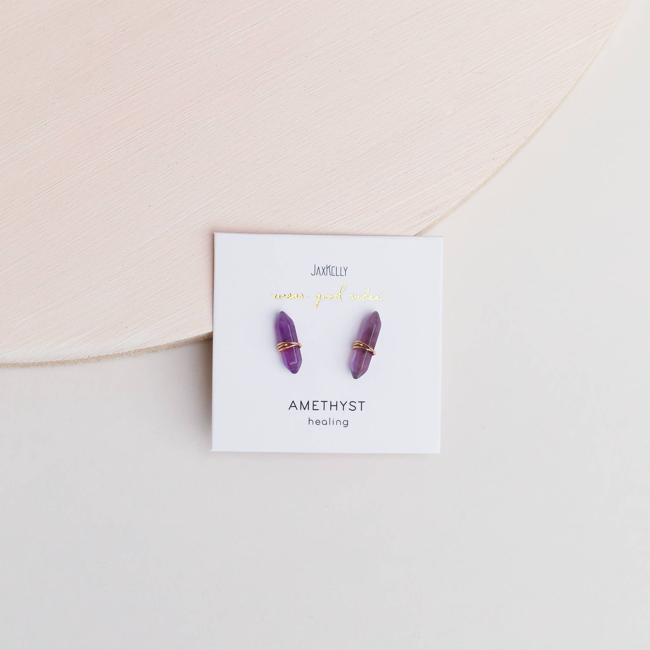 Tap into tranquility with these stunning amethyst earrings, where raw gemstone energy meets refined elegance. Each double-pointed stone is polished to perfection and cradled in luxe 18kt gold-plated sterling silver wire—because your healing crystals deserve a glow-up. Perfect for those seeking a little extra calm and sparkle in their everyday.