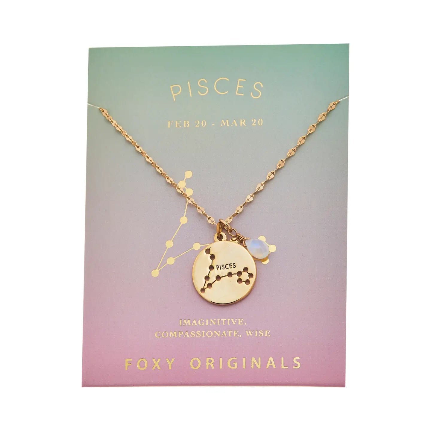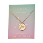 Celebrate your Zodiac vibes with this enchanting Pisces necklace! It showcases a circular pendant sprinkled with stars and a charming moonstone accent, making it a magical touch to your look.