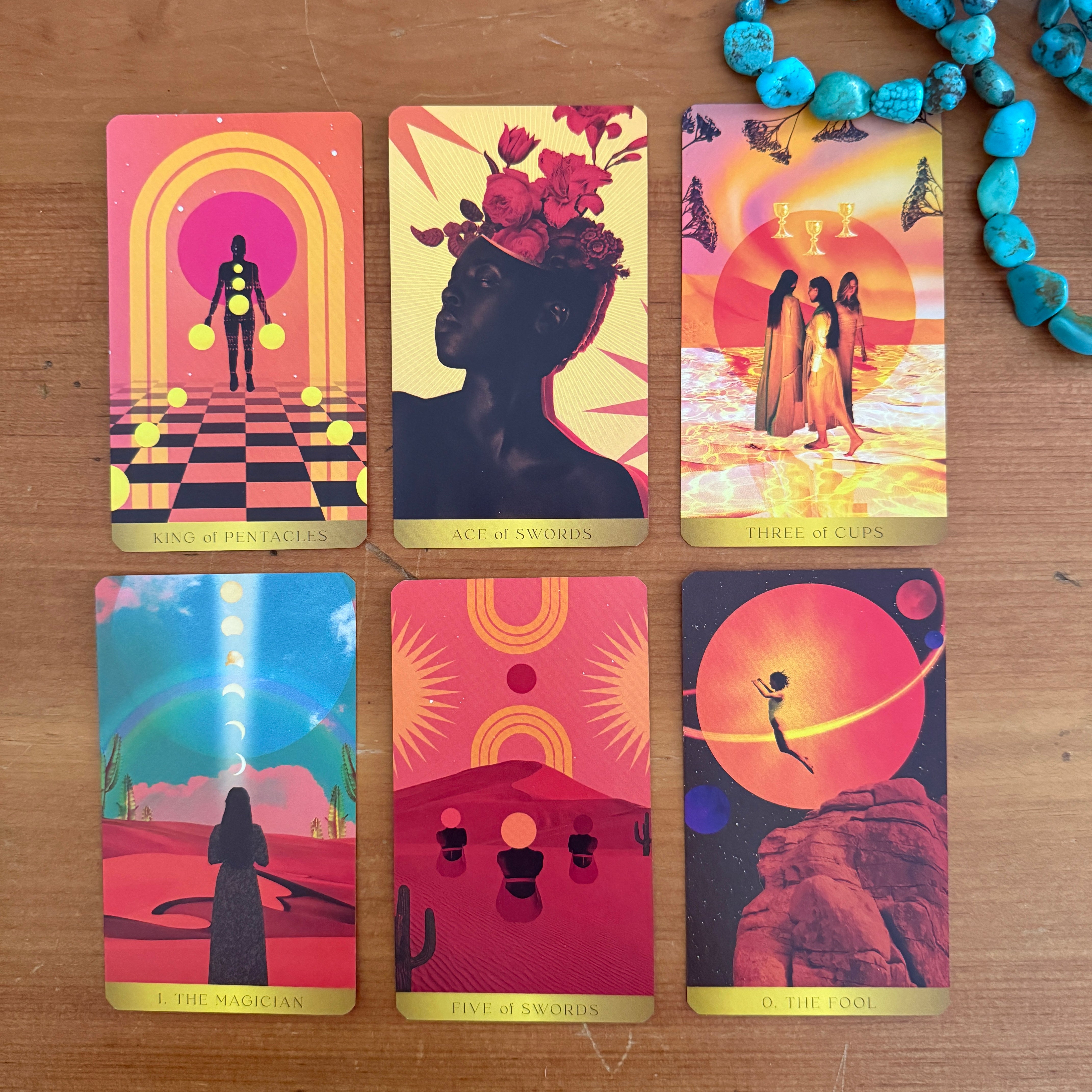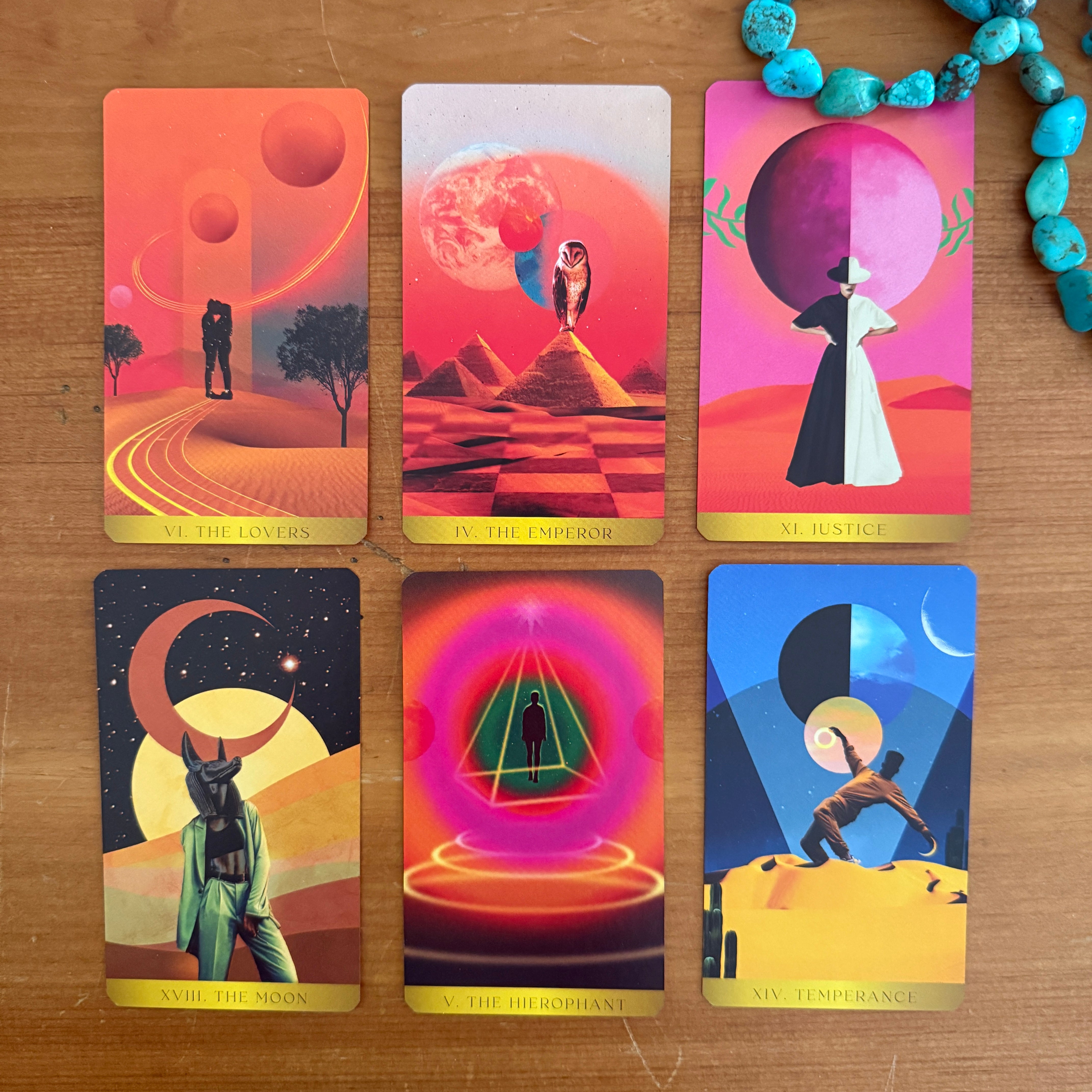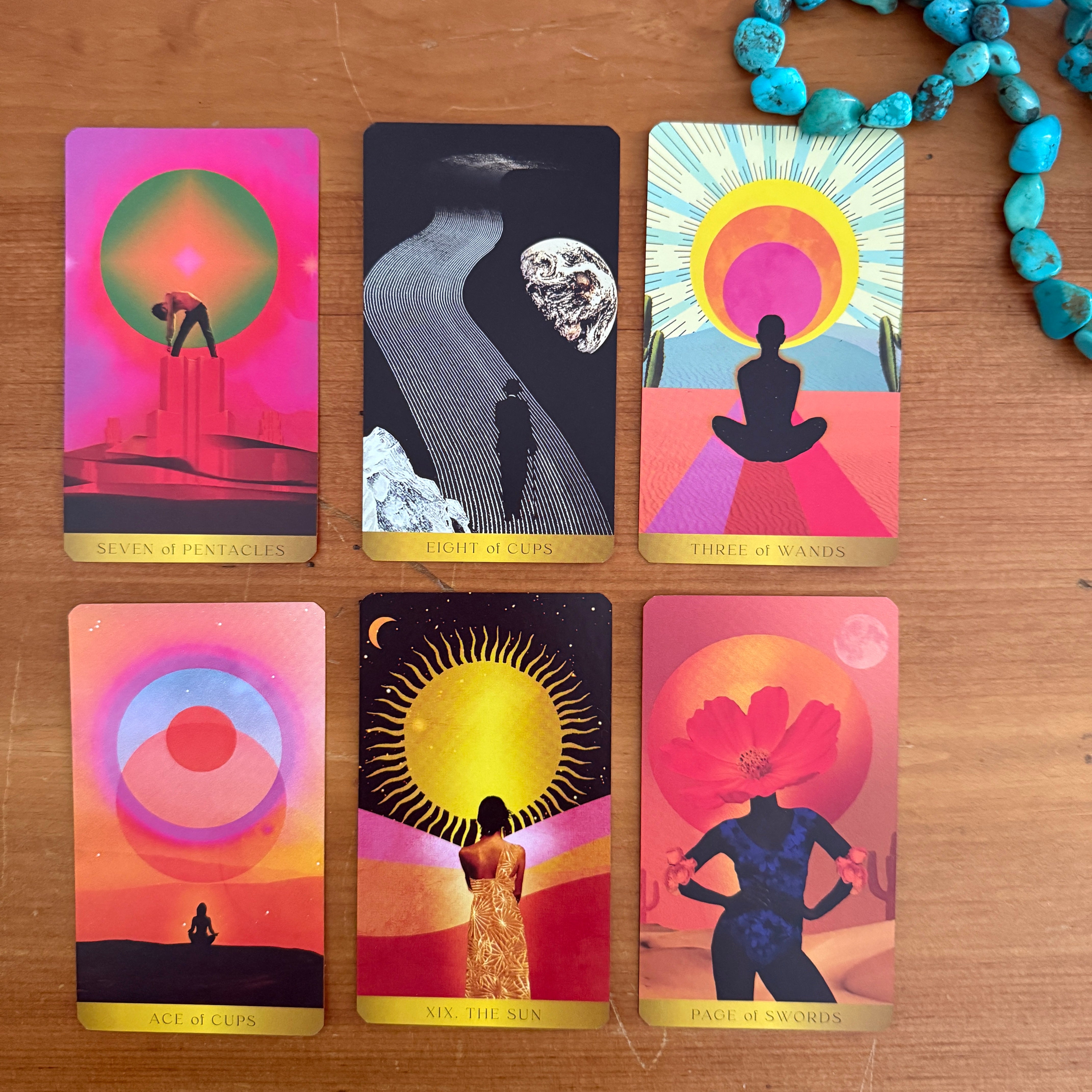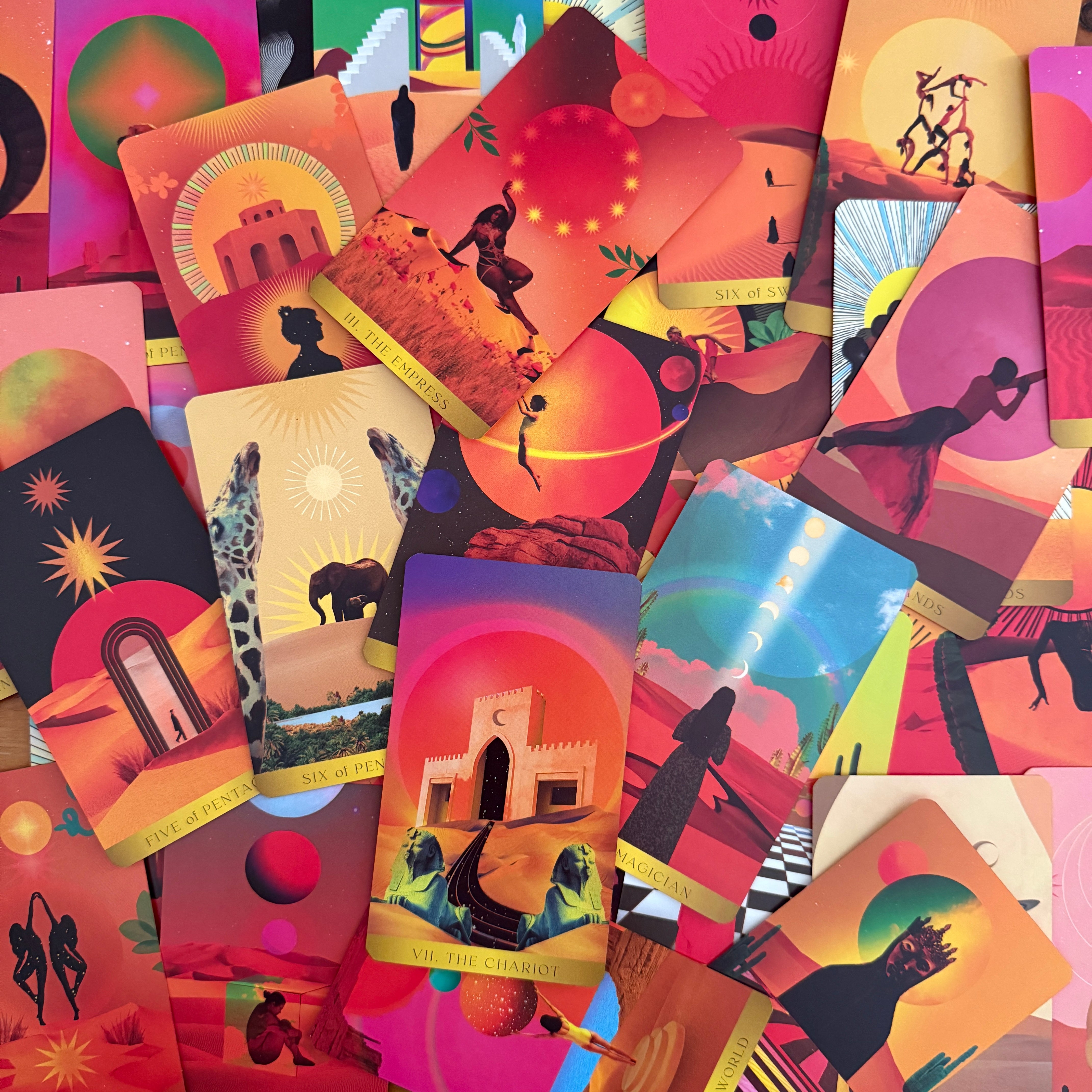 Celebrate the dazzling energy of life with these cards that whisk you away to enchanting desert dreamlands. Within these wild landscapes, discover reflections of your inner wisdom from different realms. Nat Girsberger’s Radiant Wilds tarot deck serves as your playful compass, helping you tune into your inner voice and broaden your awareness to embrace your most radiant self.
